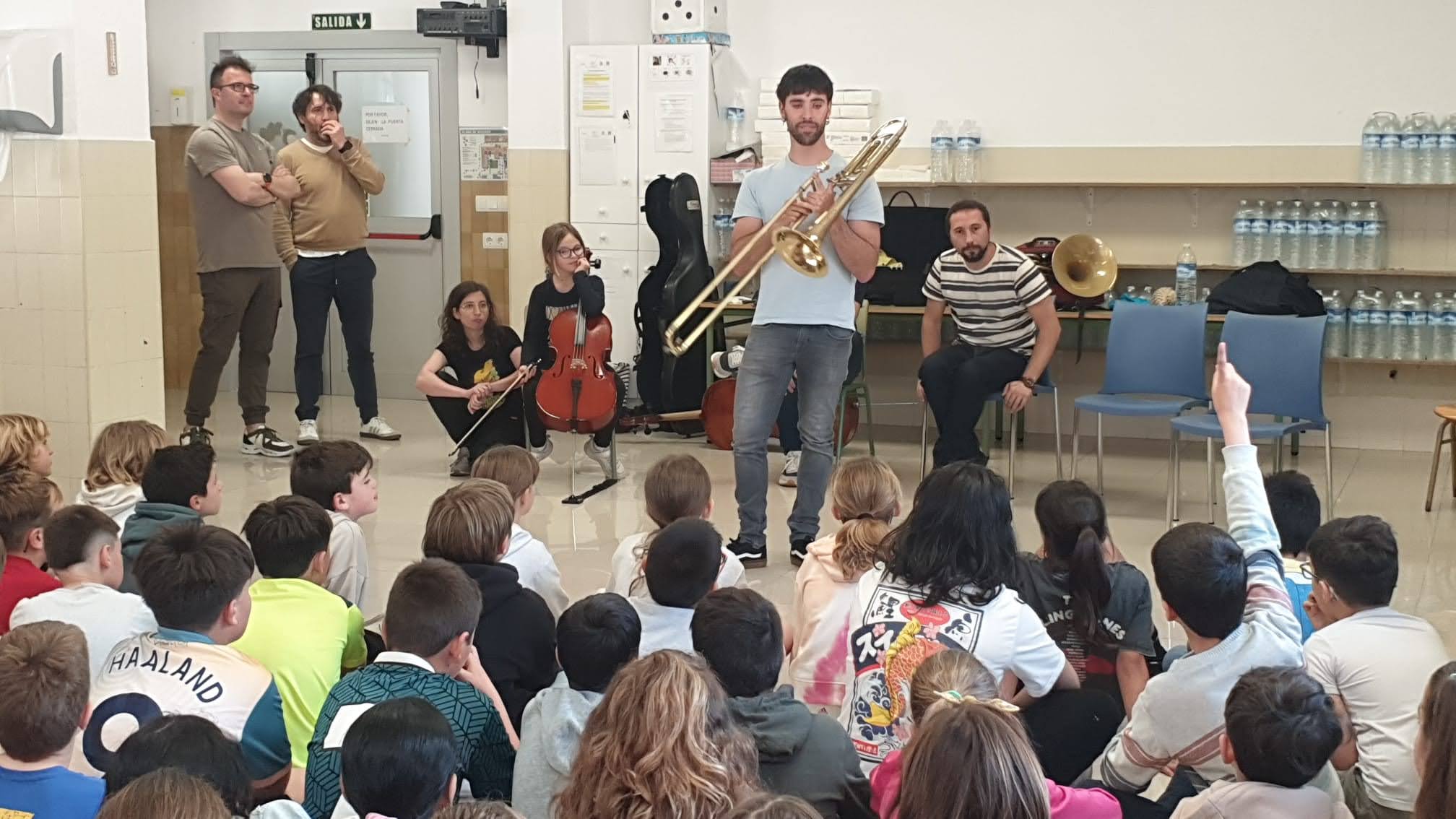 El lunes 19 de mayo algunos profesores/as de la Escuela Municipal de Música "Agustín Ruiz" vinieron al cole a presentarnos una muestra de instrumentos para todos los alumn@s de Primaria.