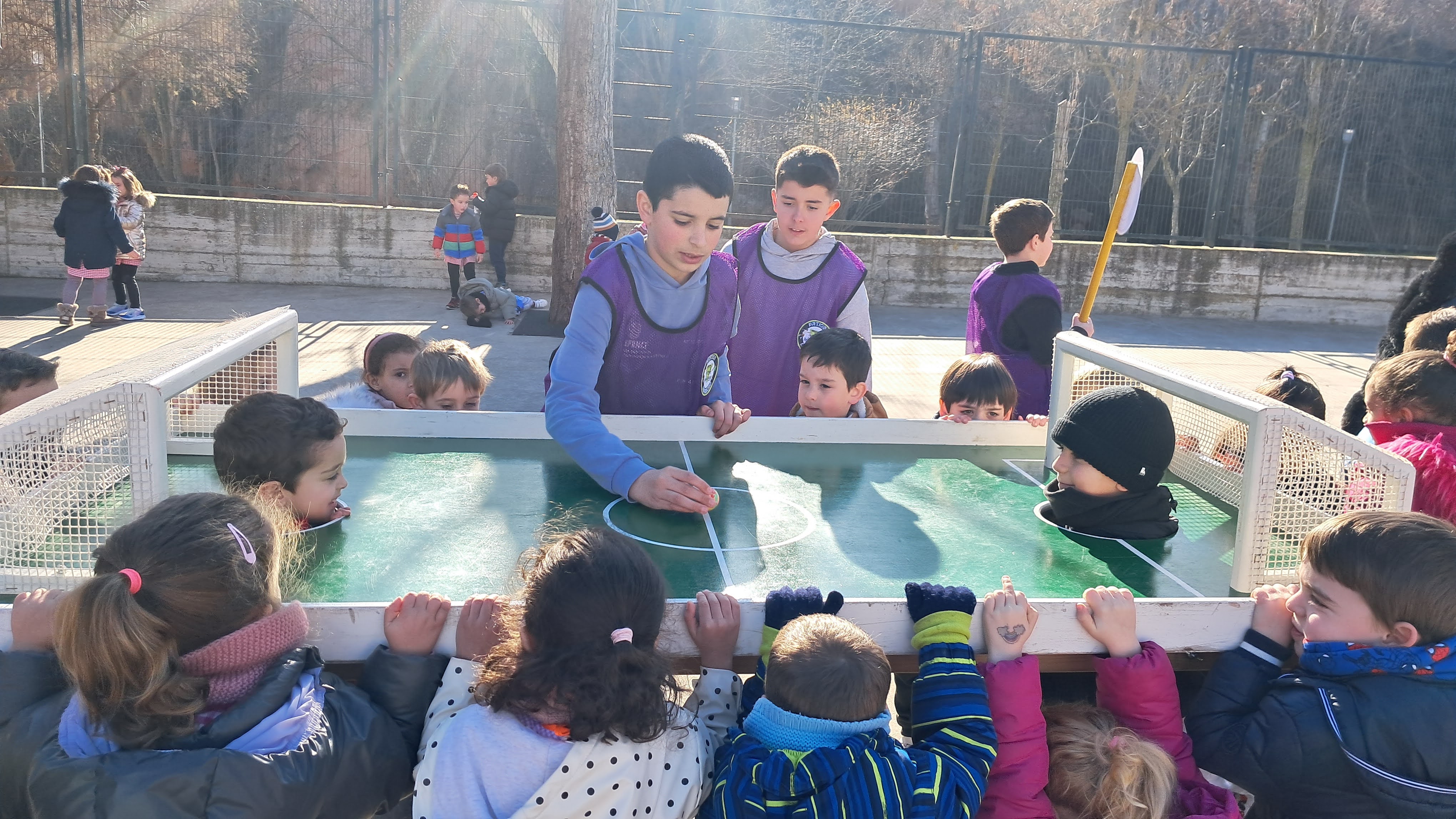 Además, todos los viernes se realizan juegos en el patio que van cambiando cada mes. Durante este curso se han realizado: "Octubre Cartas"; Multideporte; Juegos gigantes; Pichi fútbol; Circuitos de aros y muchos más...
