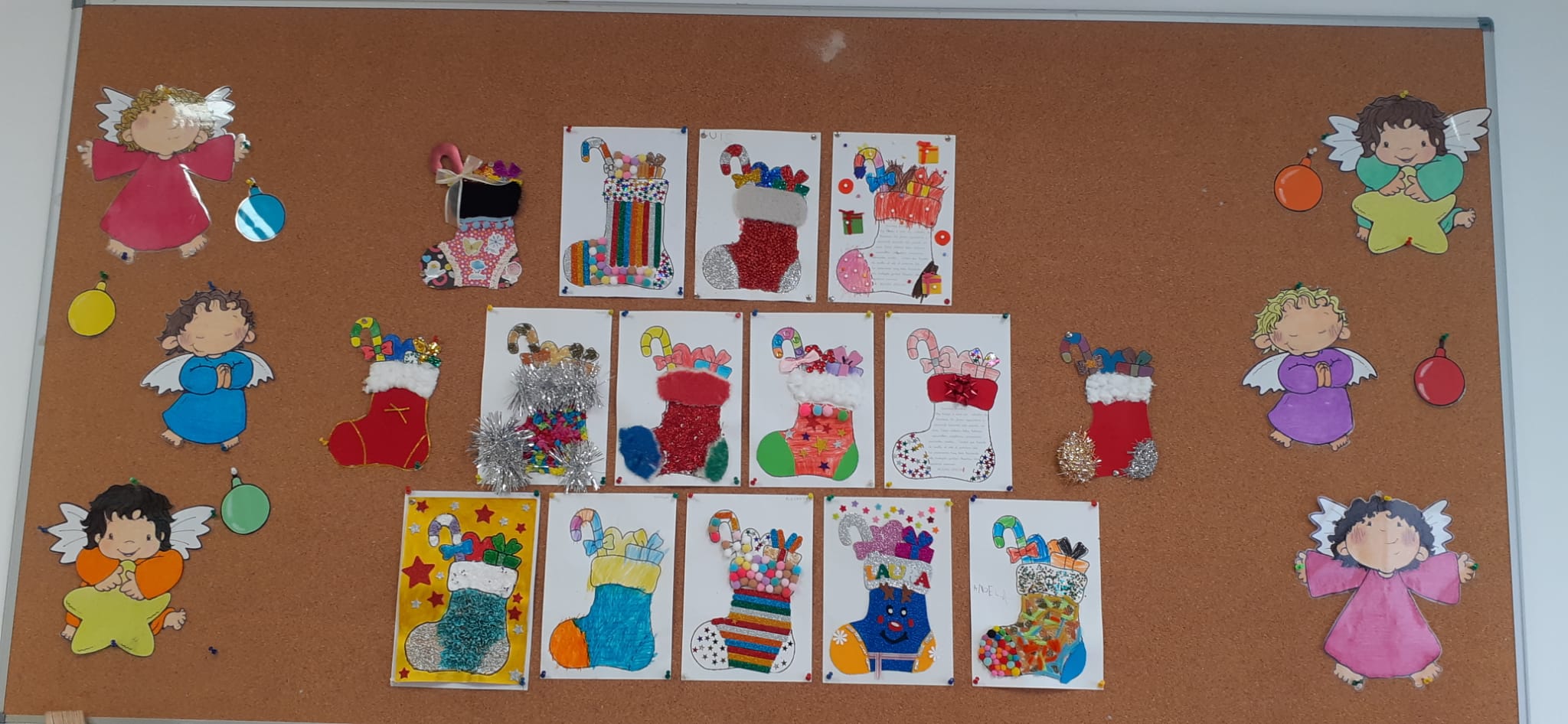 Como cada año, los alumnos/as de Infantil han elaborado unas decoraciones navideñas para el colegio. Durante los días del puente de diciembre, cada familia ha ayudado a los niños y niñas a elaborar estos arbolitos, calcetines y campanas navideñas tan bonitos.
