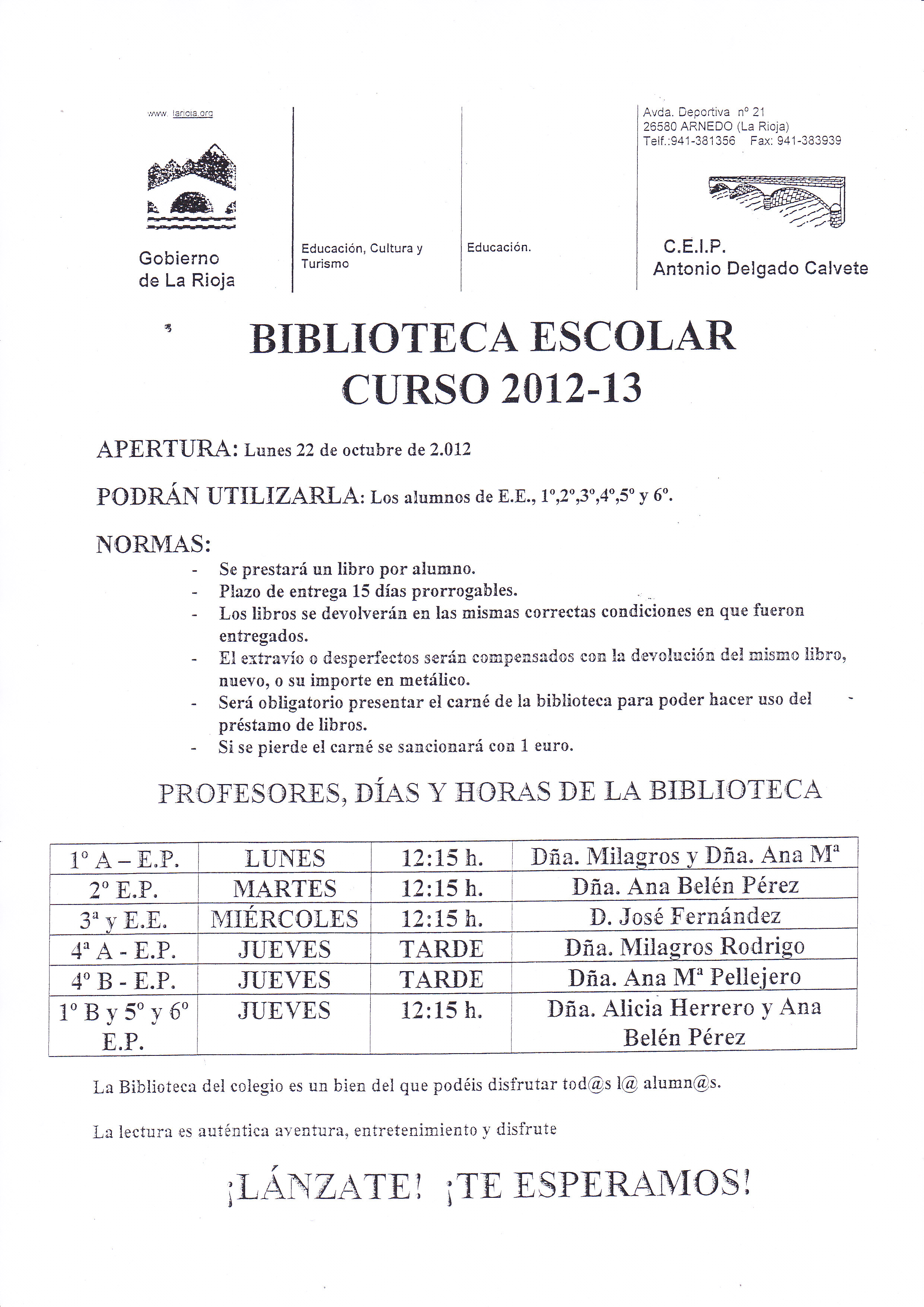 Pinchando aquí NORMAS Y HORARIOS DE LA BIBLIOTECA, puedes consultar las normas y horarios de la Biblioteca del colegio para este curso 2012-2013.